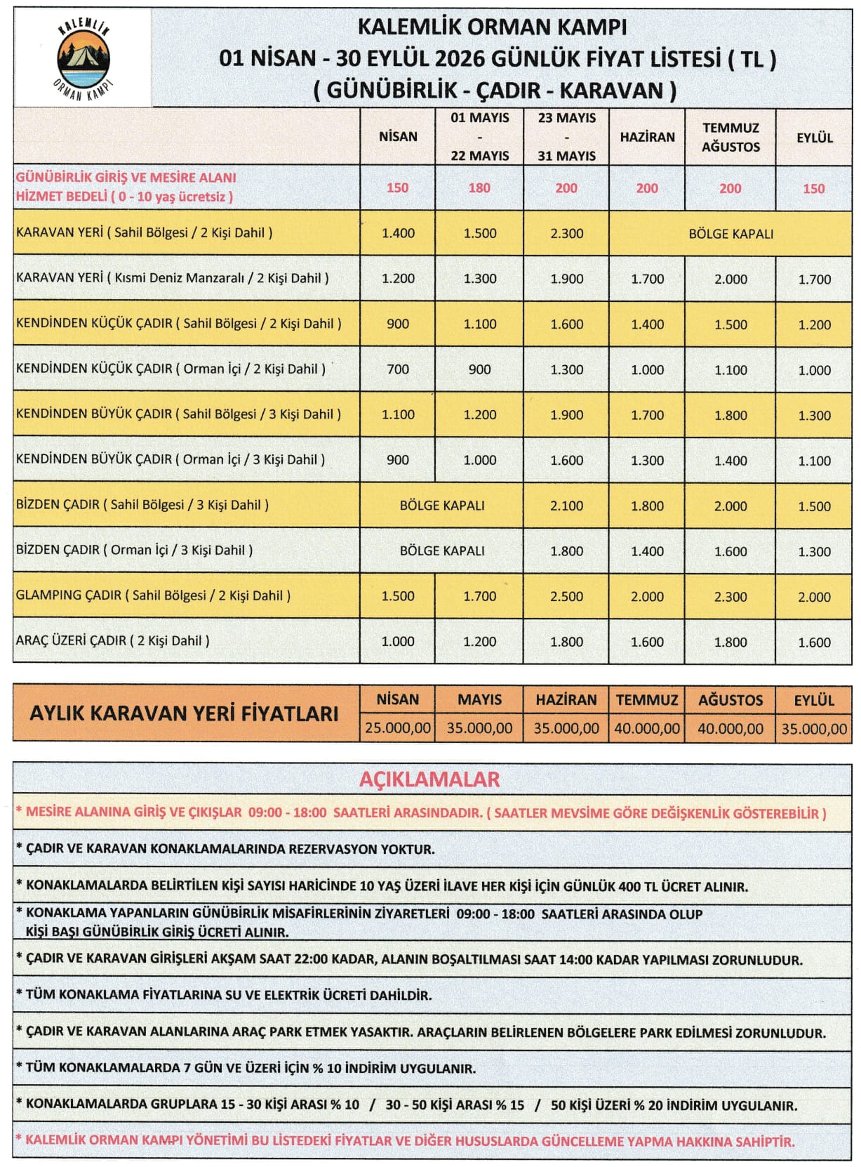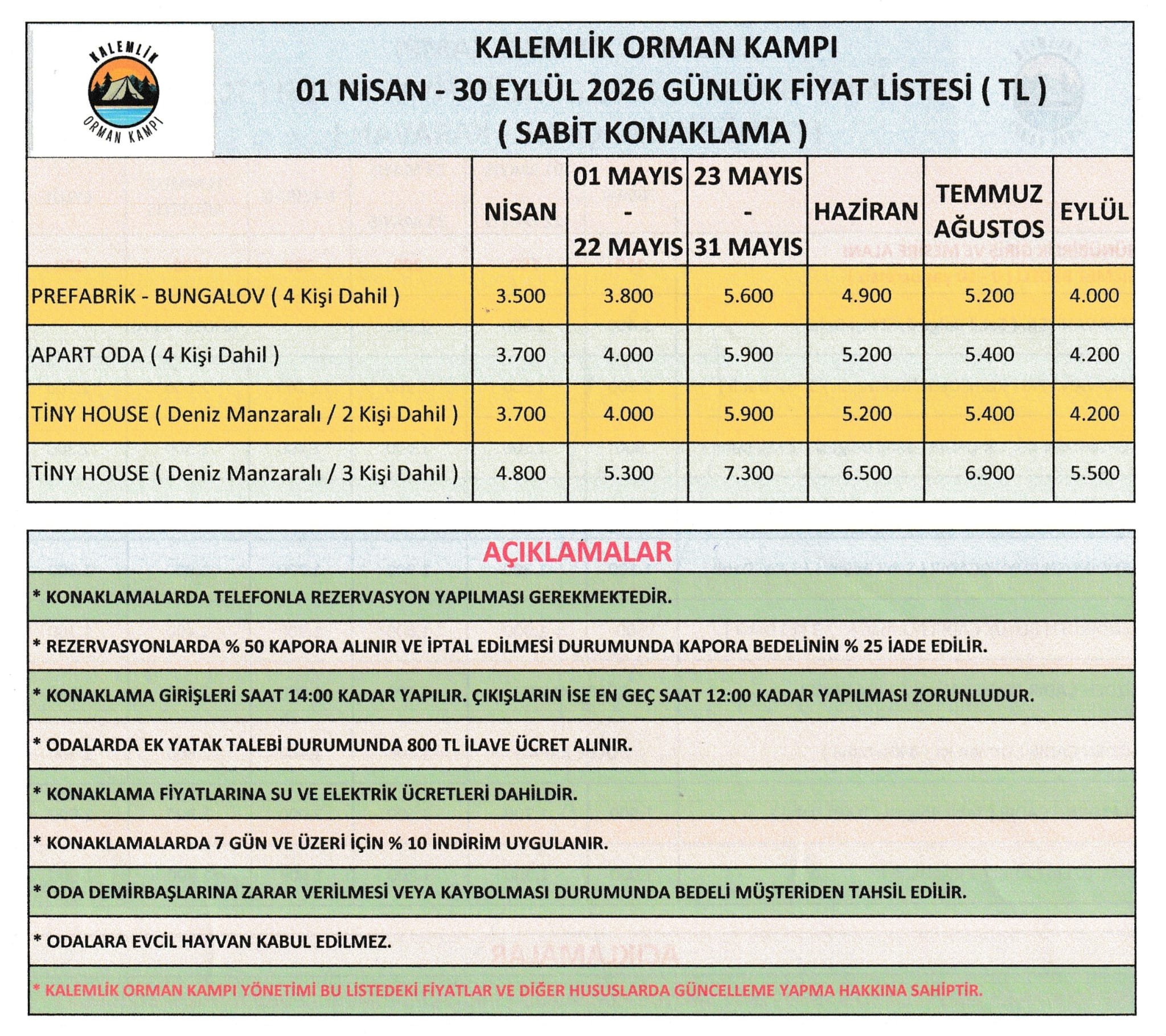 Konaklama ve Çadır Kampı